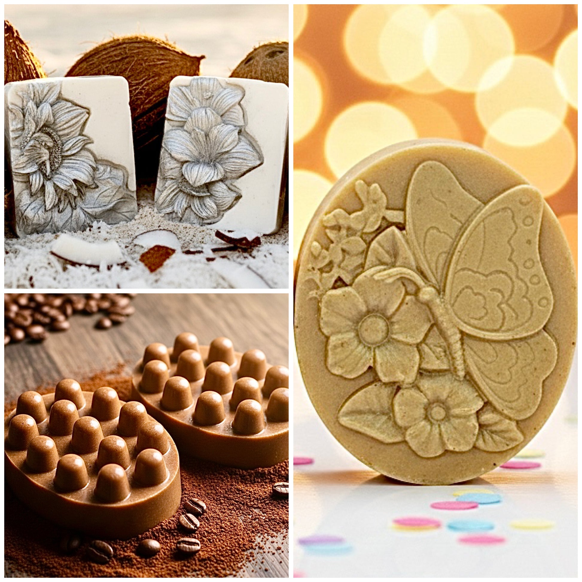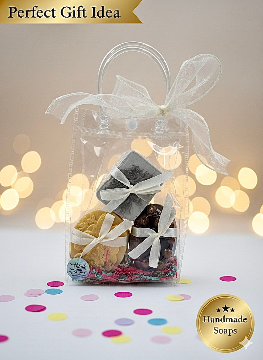Set de Jabones Artesanales Naturales y Orgánicos. Jabon de Coco Limpieza y Nutrición, Jabon de Miel Hidratación Profunda y Jabon de Cafe Exfoliante.