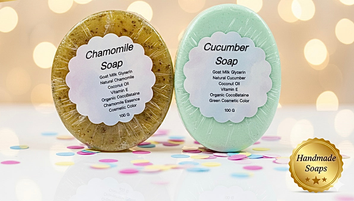 Set de Jabones Artesanales Naturales y Orgánicos. Jabon de Pepino Hidratante y Refrescante y Jabon de Manzanilla Calma la Piel Irritada.
