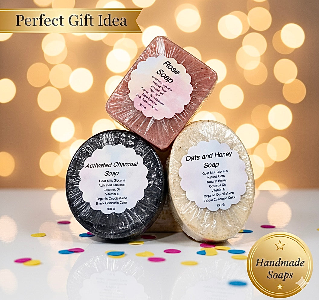Set de Jabones Artesanales Naturales y Orgánicos. Jabon de Rosa Hidratacion Profunda Jabon de Avena y Miel Limpieza Delicada y Jabon de Carbon Activada Elimina Puntos Negros y Acne.