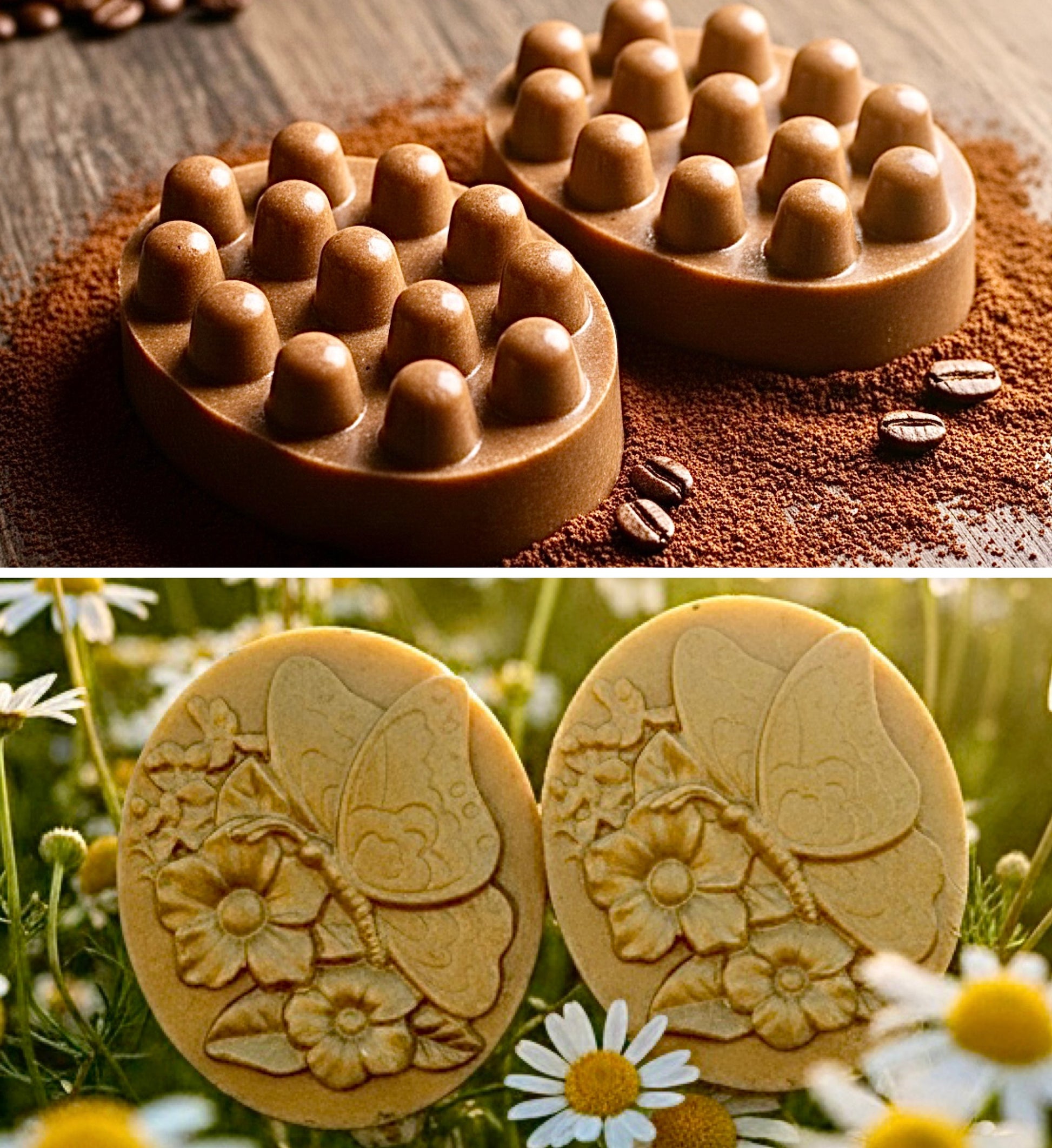 Set de Jabones Artesanales Naturales y Orgánicos. Jabon de Cafe Exfoliante y Jabon de Manzanilla Calmante para tu Piel.
