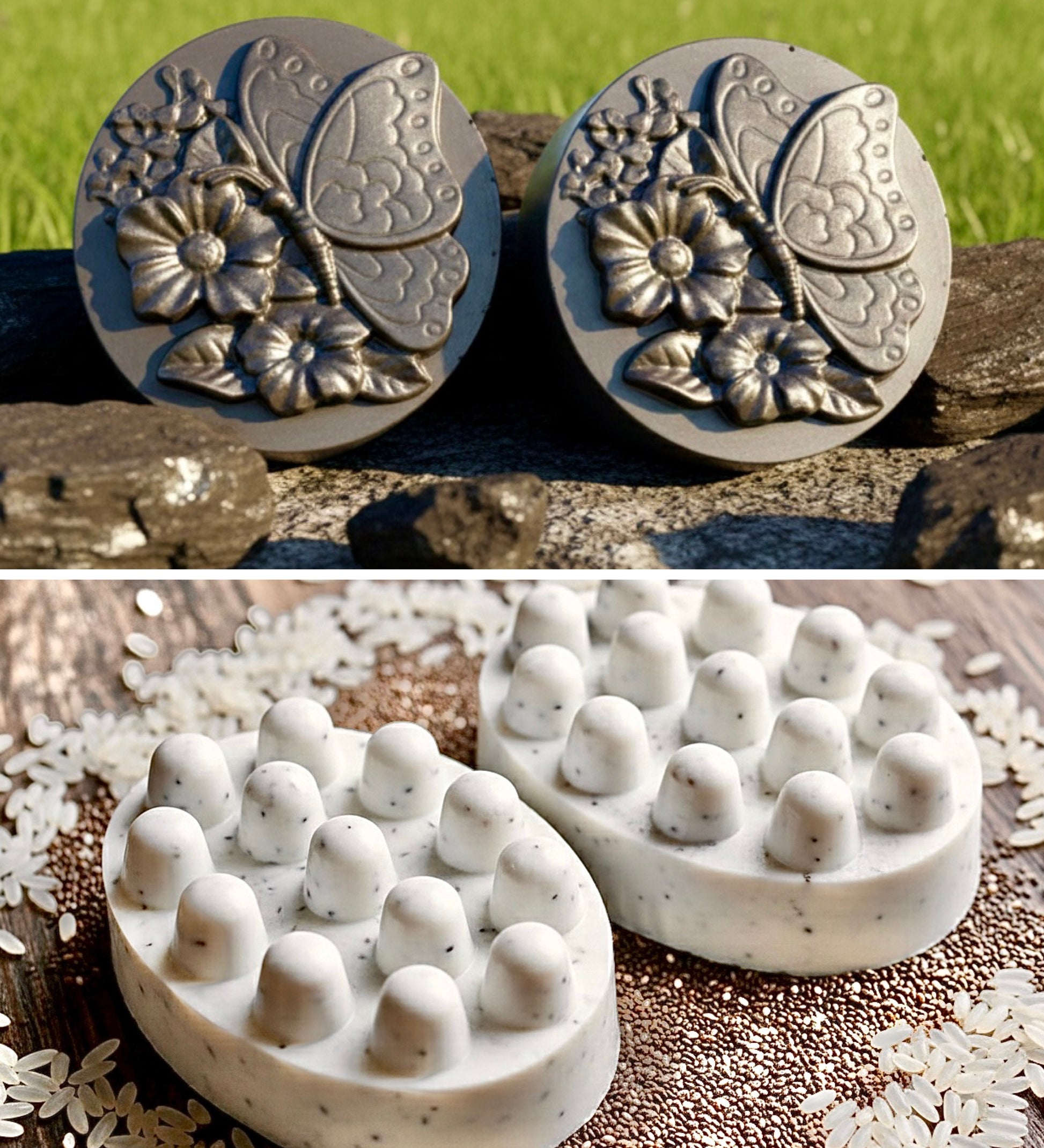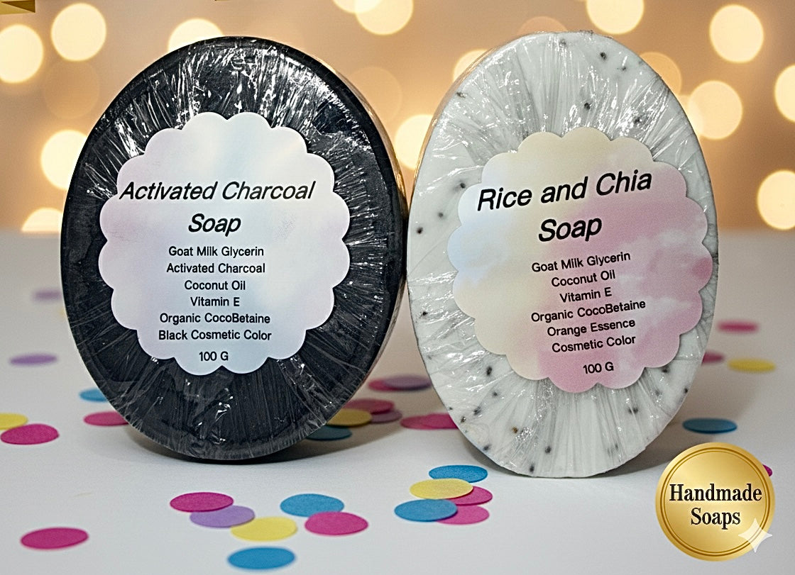 Set de Jabones Artesanales Naturales y Orgánicos. Jabon de Carbon Activado Elimina Impurezas y Exceso de Grasa y Jabon de Arroz y Chia Suavidad y Nutrición de tu Piel.